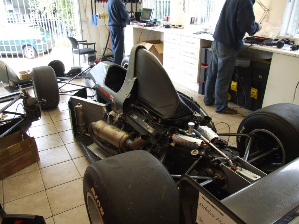 A garage shift check on a Formula 3000 car.