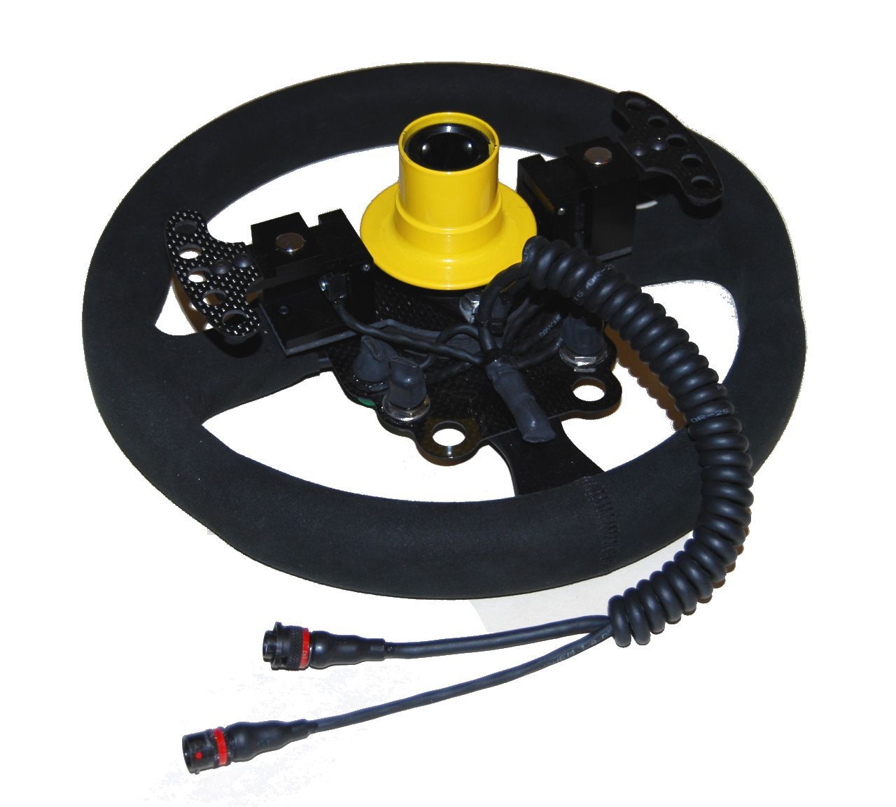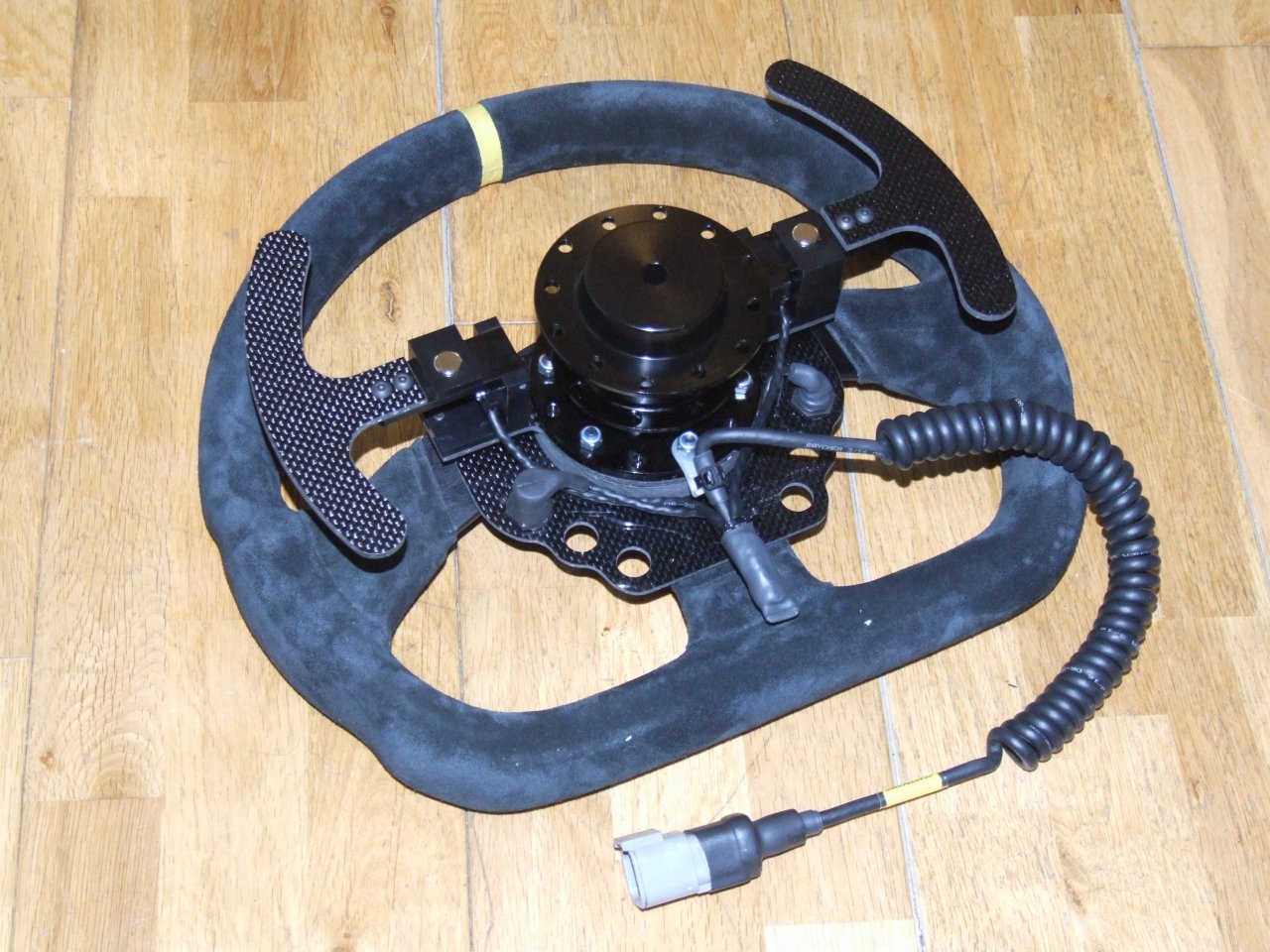 - Paddle installation on a 'GT' car steering wheel. All our paddles use carbon fibre flippers and mounting brackets as well as Raychem cables.