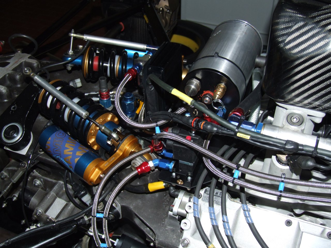 - Another compact installation, this time on a Lola B99/50 F3000 car. Notice the pneumatic actuator at the bottom of the photo - it would clearly be impossible to mount an electric solenoid in this position!